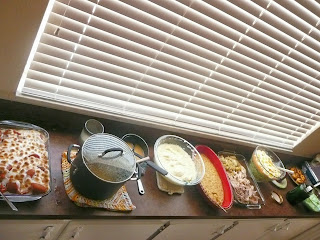 cooked a ridiculous sized dinner for the 2 of us. ham, au gratin potatoes, scalloped corn, rolls & a mini-layered salad.